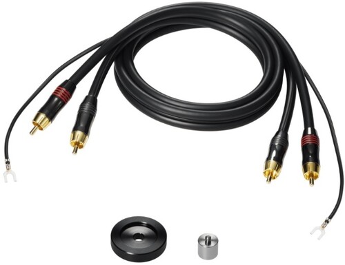 Accessories Included: Dust cover, Rubber mat, Platter, Dust cover hinges, Counterweight, Subcounterweight, Headshell (AT-LT10) with VM stereo cartridge (AT-VM95E BK), 45 RPM adapter, RCA audio cable (Approx. 1.0 m (3.3')), Power cable (Approx. 1.8 m (5.9'))