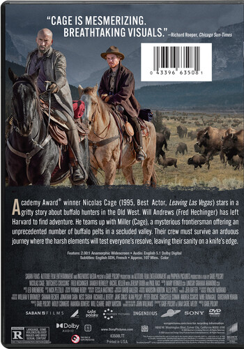 Academy Award® winner Nicolas Cage (1996, Best Actor, Leaving Las Vegas) stars in a gritty story about buffalo hunters in the Old West. Will Andrews (Fred Hechinger) has left Harvard to find adventure. He teams up with Miller (Cage), a mysterious frontiersman offering an unprecedented number of buffalo pelts in a secluded valley. Their crew must survive an arduous journey where the harsh elements will test everyone's resolve, leaving their sanity on a knife's edge. GENRE: Drama, Thriller, Western RATED: R