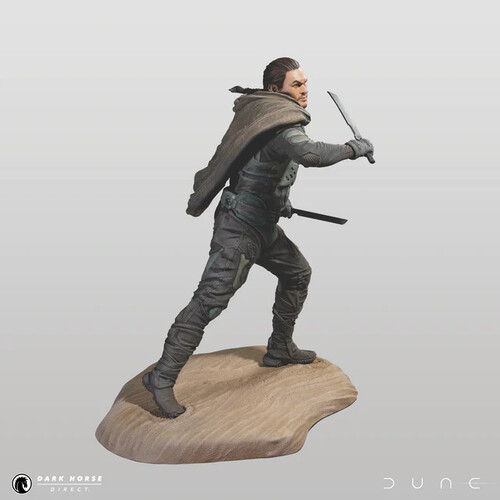 This hand-painted figure, standing approximately 9.5 inches tall, is posed in a combat stance, as Duncan Idaho is always ready for battle.