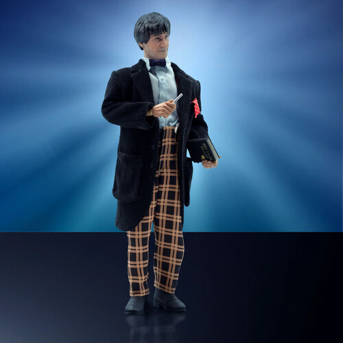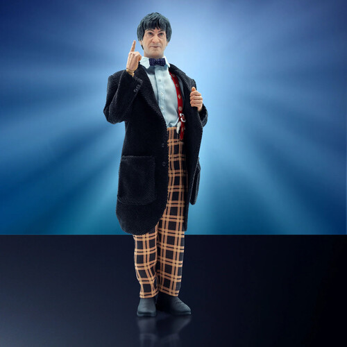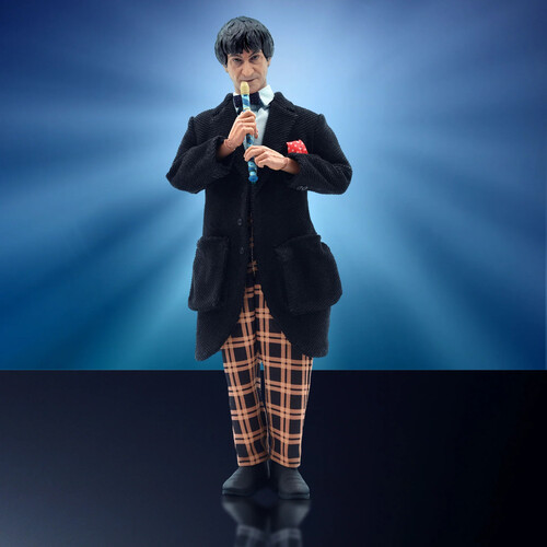 This incredibly detailed figure features a fully-realised likeness of Patrick Troughton, has over 30 points of articulation and interchangeable hands. It is dressed in an authentically styled fabric costume, comes with multiple accessories including a 500-year diary, recorder, and sonic screwdriver. The figure comes with a display base.
