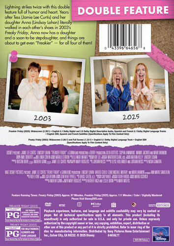 Lightning strikes twice with this double feature full of humor and heart. Years after Tess (Jamie Lee Curtis) and her daughter Anna (Lindsay Lohan) literally walked in each other's shoes in 2003's "Freaky Friday," Anna now has a daughter and a soon-to-be stepdaughter, and things are about to get even "Freakier" - for all four of them! Run Time: 217 minutes