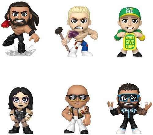 Ready the ring for a spectacular show with the WWE™ Mystery Minis! Each figure features one of your favorite superstars as an awesome collectible. There’s Roman Reigns™ (1/6), Cody Rhodes™ (1/6), John Cena® (1/6), Rhea Ripley™ (1/6), The Rock™ (1/6), and Jey Uso™ (1/6). Collect them all! Vinyl figure is approximately 3 in (7.6 cm) tall. Height varies depending on figure. One collectible per single package purchase.