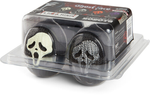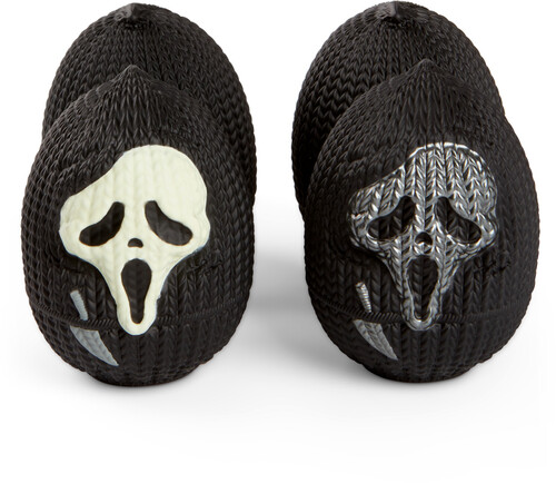 The Handmade by Robots line continues with Ghost Face, this time recreated as 2 1/2" collectible egg-shaped knit toys! This set of 4 figures comes packaged together in a clamshell "egg" carton.