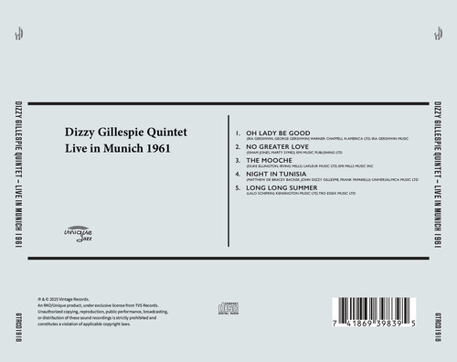 In the early 1960s, Dizzy Gillespie was at a pivotal moment in his career, actively blending the influence of bebop with his passion for orchestration, particularly through his collaborations with figures like Lalo Schifrin. This era saw Gillespie not only as an improvisational genius but also as a structured visionary, developing compositions that would push the boundaries of jazz into new harmonic and rhythmic territories. In this live Munich performance, Gillespie showcases his unique blend of musical education and humor-a balance only he could deliver with such ease. Here, the Dizzy Gillespie Quartet presents both well-known standards and unique arrangements with palpable energy and precision. Pieces like "Night in Tunisia" resonate with the complex and driving rhythms that became synonymous with Gillespie's style. This performance, unlike earlier versions, infuses the tune with the warmth and depth of years of refinement.