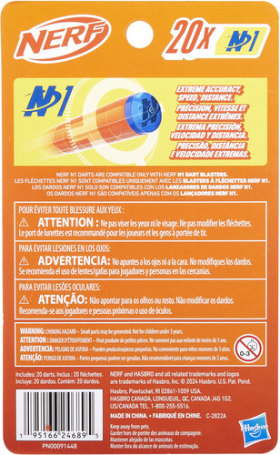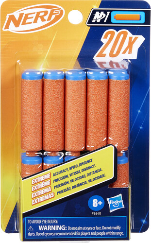 This pack includes 20 Nerf N Series N1 darts, compatible only with Nerf N Series blasters. Eyewear recommended (not included). Blasters sold separately, subject to availability.