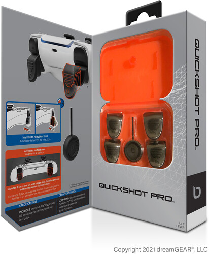 The new and improved Quickshot Pro for PS5, is the easiest way to customize your controller with improved trigger surface area, and trigger lock system for faster reaction time in FPS games and more.