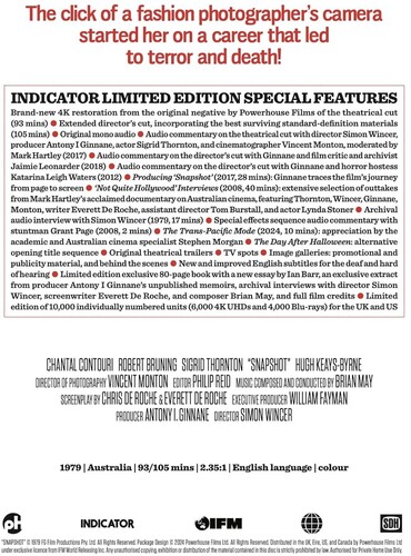 Produced by Antony I Ginnane (Patrick), co-written by Everett De Roche (Roadgames), and scored by Brian May (Mad Max), Snapshot – released internationally under the titles One More Minute and The Day After Halloween – is a classic of Ozploitation cinema.