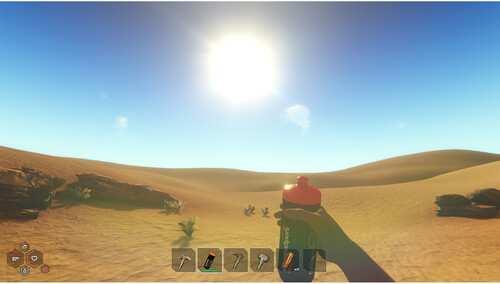 Your day started as planned. Motivated and full of ambition you started the run of your life, in the middle of the desert, surrounded by like-minded people. The months of hard training should finally bear fruit. Suddenly, you were caught in a monstrous sandstorm and now you find yourself alone in an inhospitable, hot environment. Deserted and merciless, an ocean of sand stretches to the horizon. You feel the scorching heat on your skin, sand blowing right at your face, far and wide only vast desert... but wait, what is that? Something is moving in the far distance. What happened? Your first thought: Survival. Your second thought: Rescue will surely come. The bitter realization: No one will come, you are completely on your own. The big question: Where are you and why are there two moons in the night sky?
