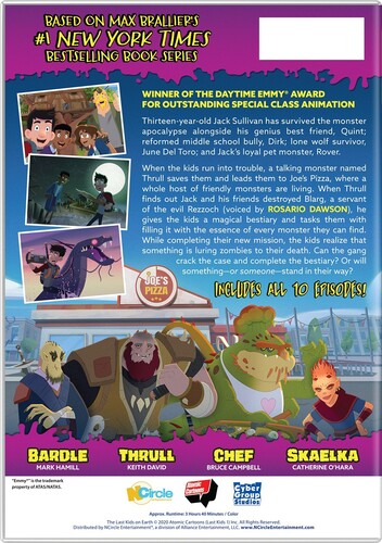 Thirteen-year-old Jack Sullivan has survived the monster apocalypse alongside his genius best friend, Quint; reformed middle school bully, Dirk; lone wolf survivor, June Del Toro; and Jack’s loyal pet monster, Rover. When the kids run into trouble, a talking monster named Thrull saves them and leads them to Joe’s Pizza, where a whole host of friendly monsters are living. When Thrull finds out Jack and his friends destroyed Blarg, a servant of the evil Rezzoch (voiced by ROSARIO DAWSON), he gives the kids a magical bestiary and tasks them with filling it with the essence of every monster they can find. While completing their new mission, the kids realize that something is luring zombies to their death. Can the gang crack the case and complete the bestiary? Or will something—or someone—stand in their way?