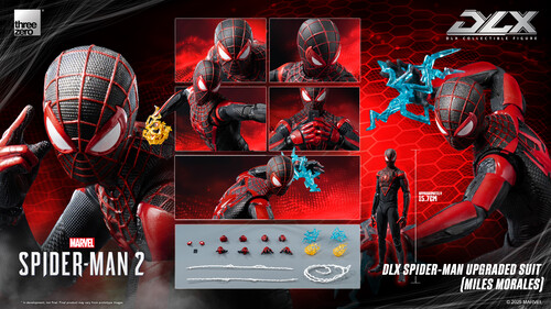 From the video game Marvel's Spider-Man 2, threezero proudly presents another Spider-Man figure ─ the DLX Spider-Man Upgraded Suit (Miles Morales)!