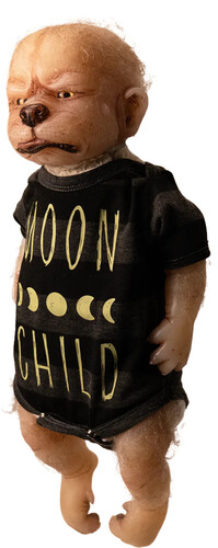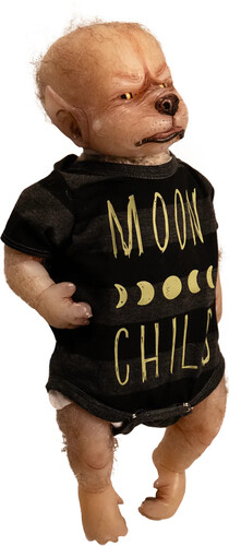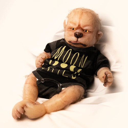 Toby is the size and weight of a new born with added spooky charm! He features a solid silicone head, arms and legs attached to a weighted plush furry body, giving the look and feel of holding a real live baby werewolf!